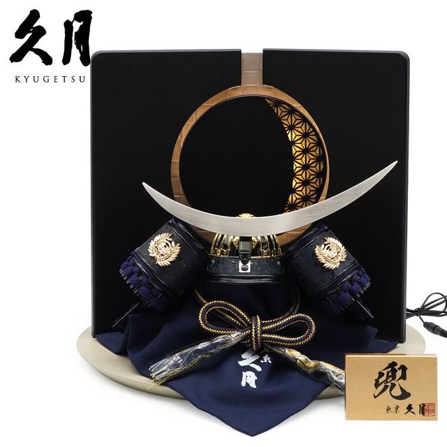 久月作 8号 黒小札紺糸縅伊達政宗公ノ兜 麻の葉LED屏風平飾りセット 五月人形/端午の節句/子供の日/男の子/コンパクト/人形の久月