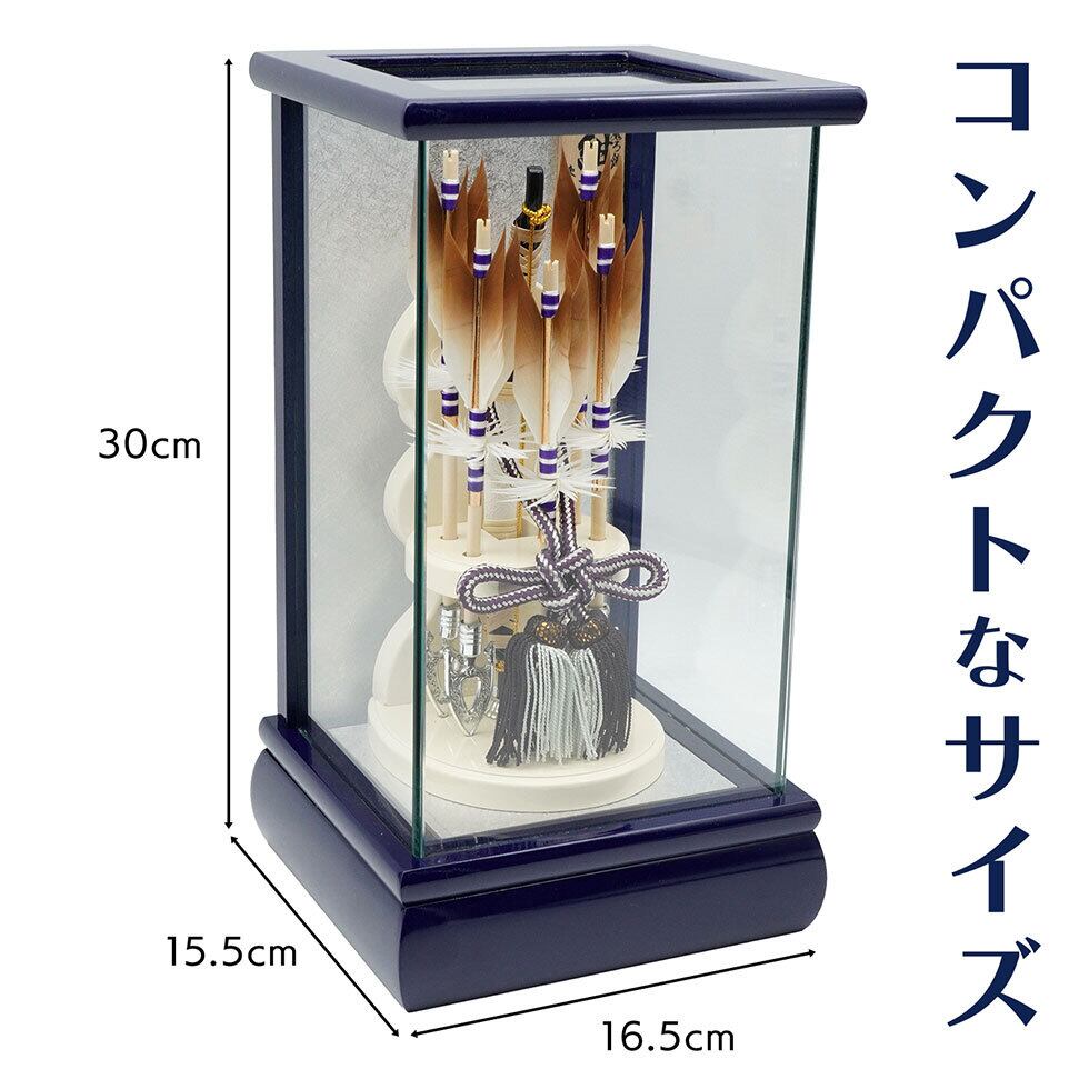 明るく高級感のあるパノラマガラスケースが破魔弓を引き立てます。