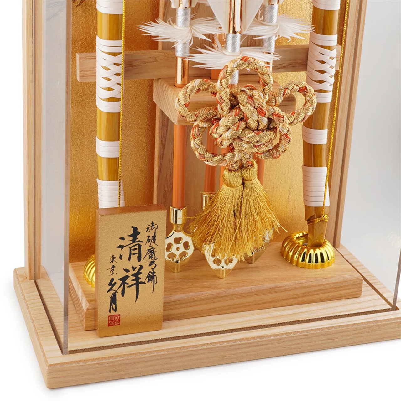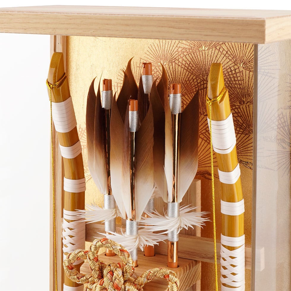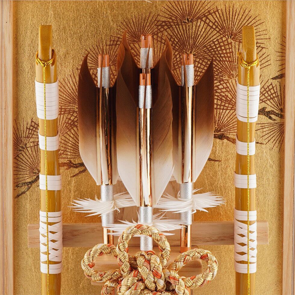 コンパクトながらも作りにこだわった上品な破魔弓飾り、