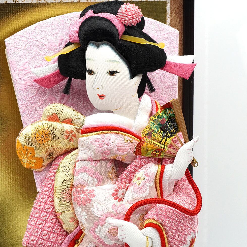 優しい表情の手描き面相が上品で現代的な押し絵羽子板、