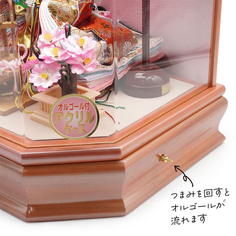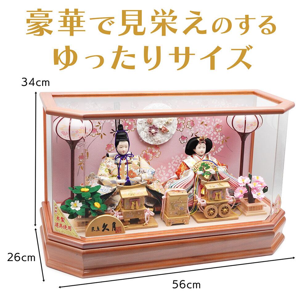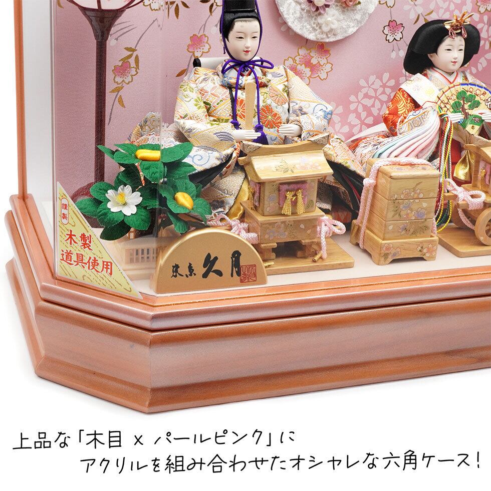 久月作 おひなさま 親王飾り 六角アクリルケース入り 木目 x ピンク系 雛人形/ひな人形/雛祭り/節句/コンパクト/女の子/人形の久月