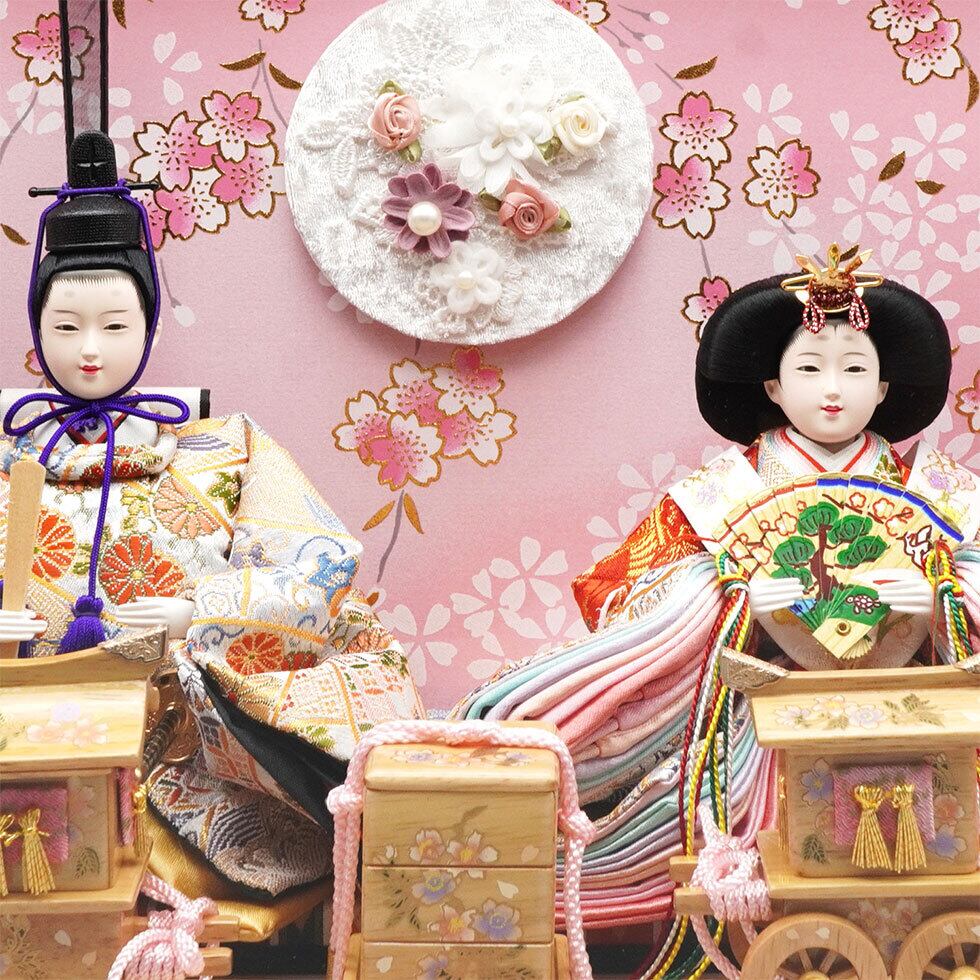 背板の桜の金彩の絵柄や中央の花飾りが可愛らしさを演出します。