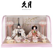 久月作 おひなさま 親王飾り アール型アクリルケース入り ピンク/木目 雛人形/ひな人形/雛祭り/節句/コンパクト/女の子/人形の久月