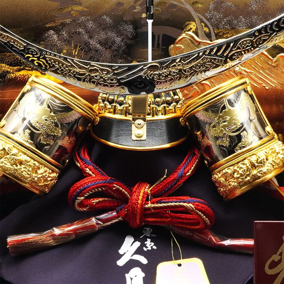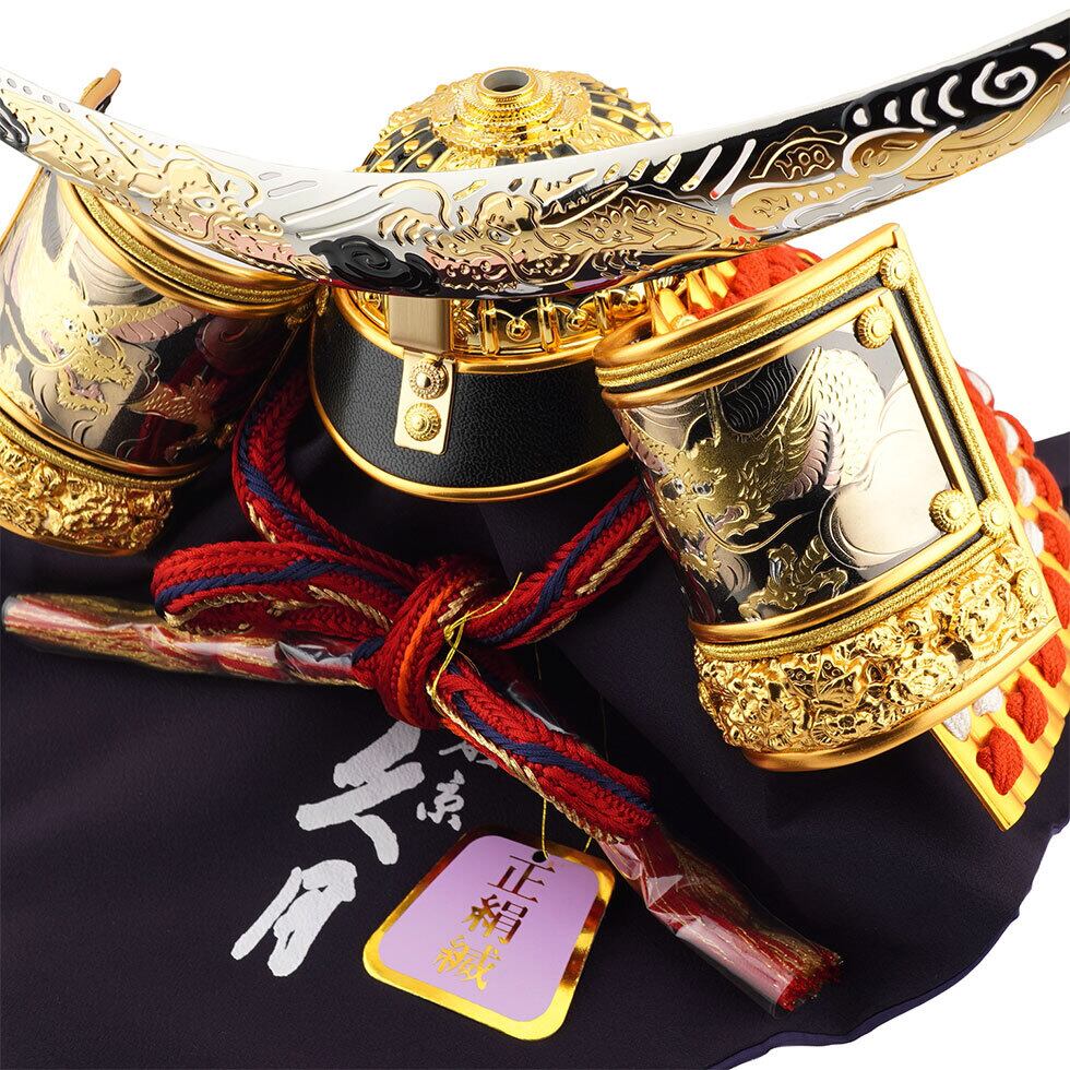 伊達兜の特徴の三日月型の鍬形には龍の絵柄を彫刻、