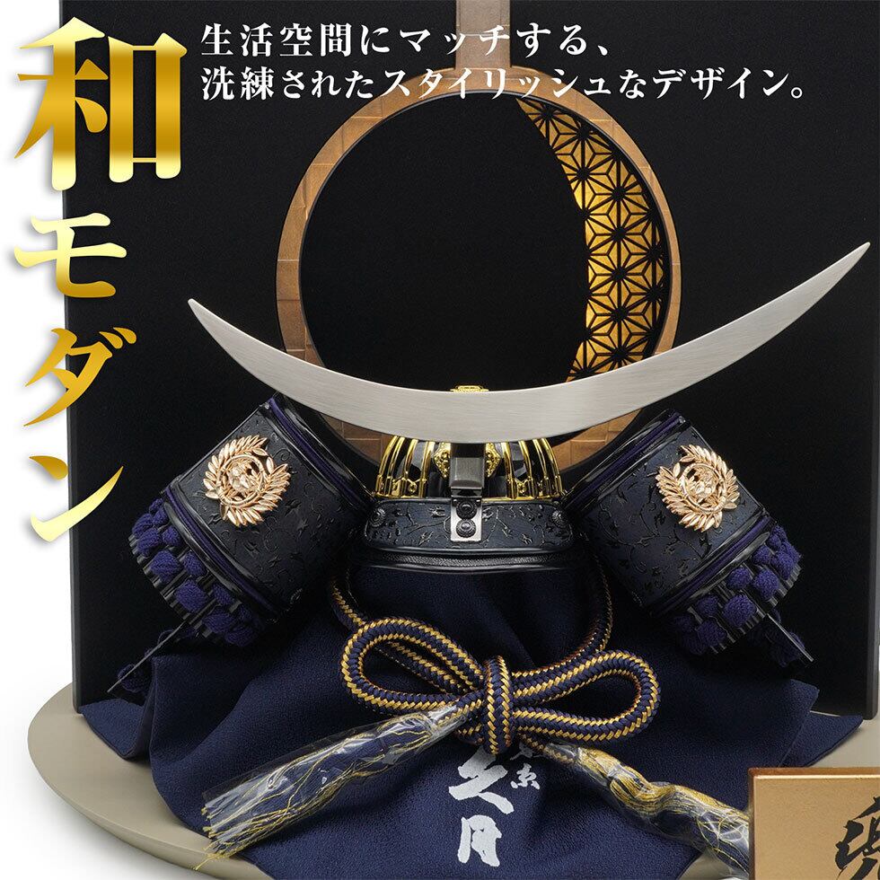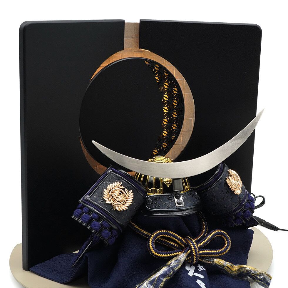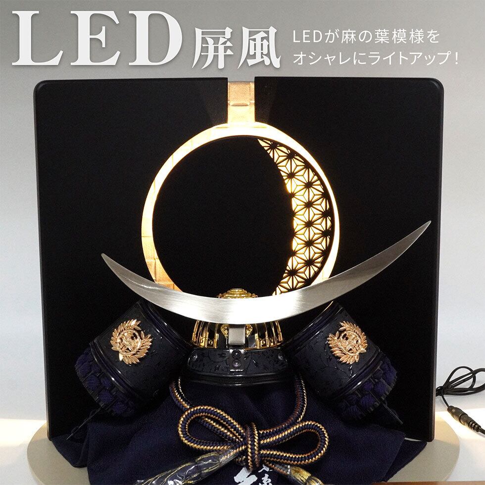 久月作 8号 黒小札紺糸縅伊達政宗公ノ兜 麻の葉LED屏風平飾りセット 五月人形/端午の節句/子供の日/男の子/コンパクト/人形の久月