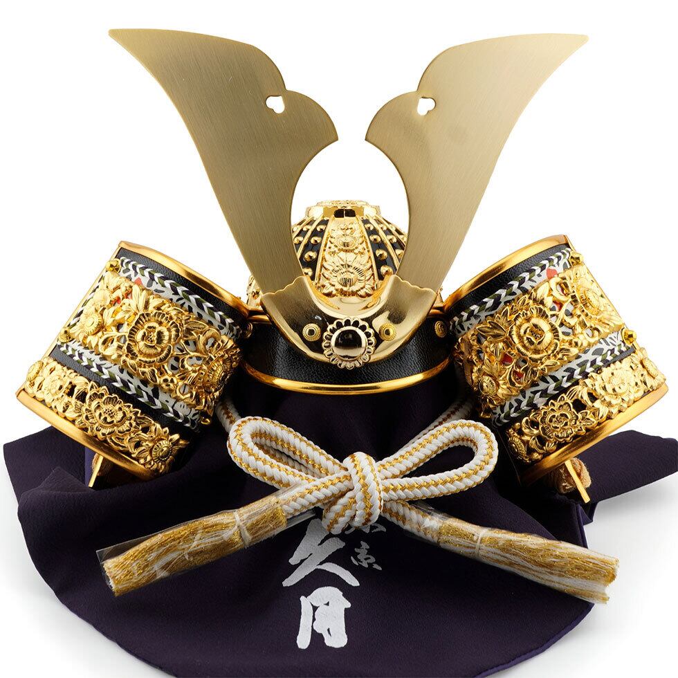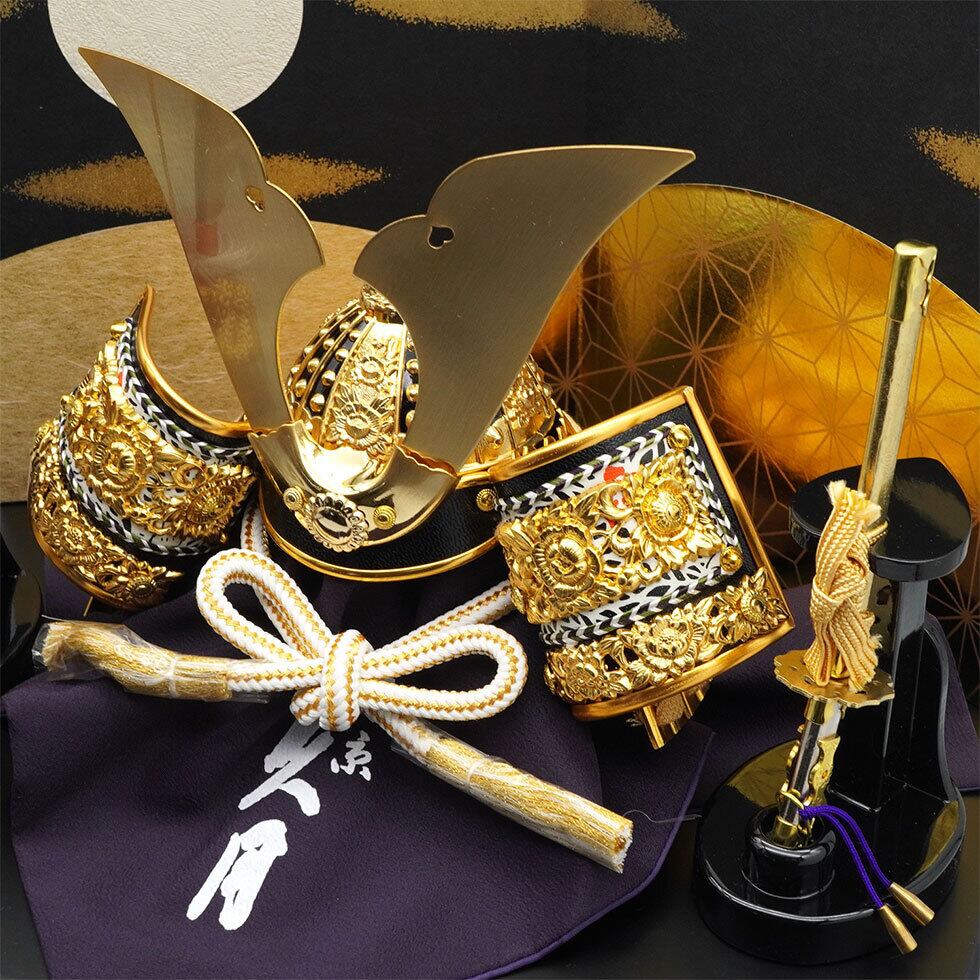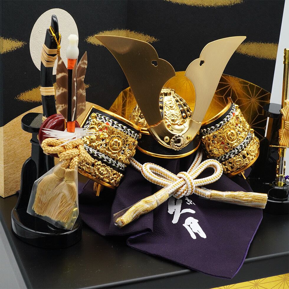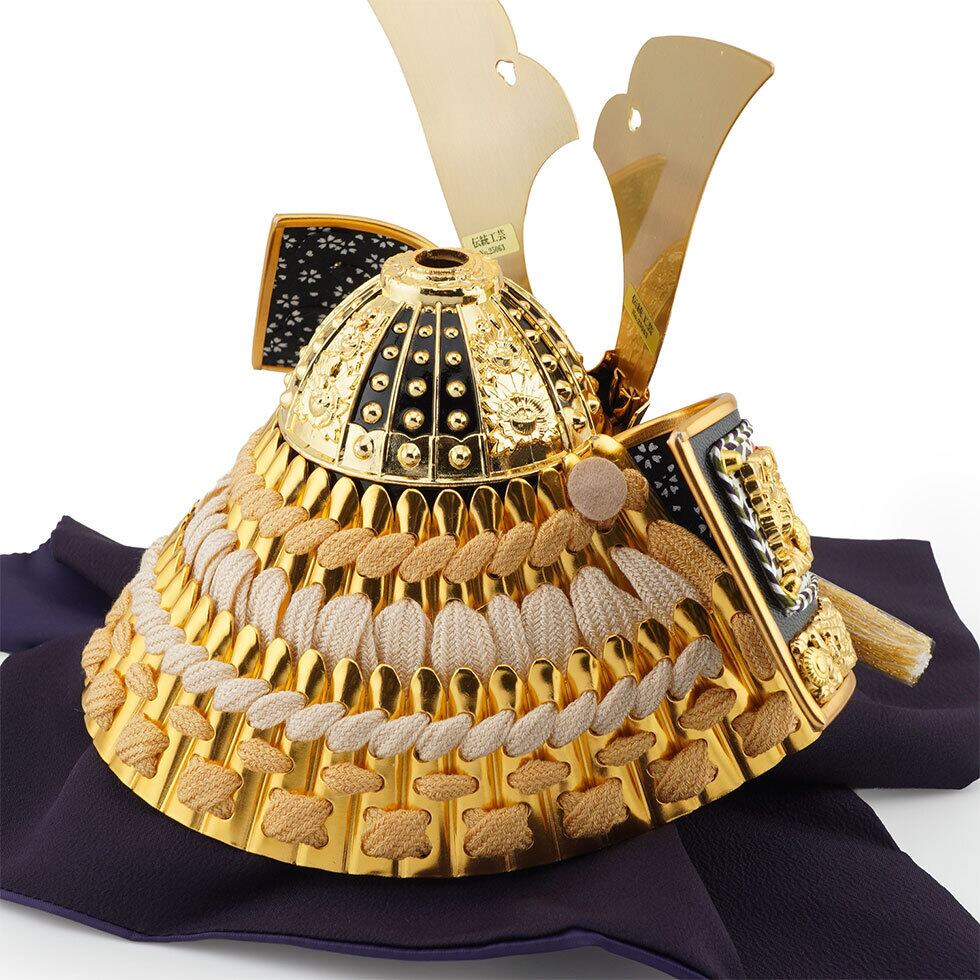 兜はコンパクトながら金色の小札が豪華、本格的に仕立てた逸品です。
